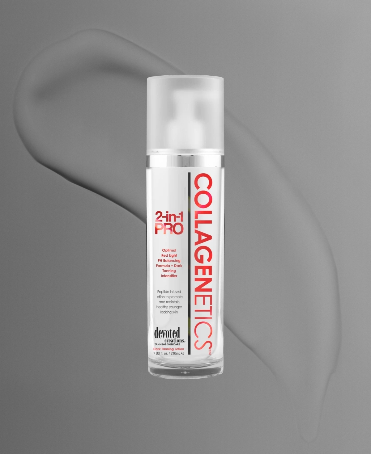 A Collagenetics™ 2-IN-1 LOTION PRO™ forradalmian új megoldás azok számára, akik szeretnék a vörösfény-terápiát és a szoláriumozást egyaránt kiélvezni – kompromisszumok nélkül. Ez az intelligens, kettős hatású lotion nemcsak előkészíti a bőrt a vörösfény-kezeléshez, de egyben kiváló barnulást gyorsító is, így külön termék használata nélkül is elérheted a maximális eredményt.