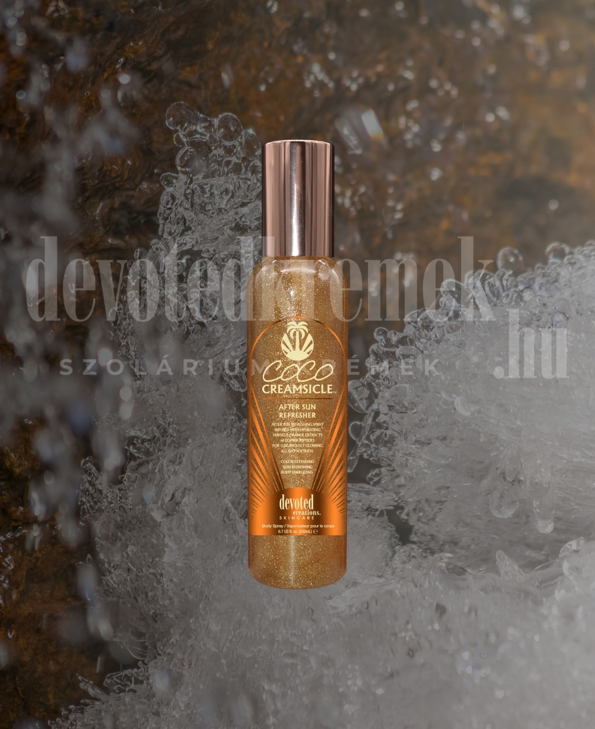 Megérkeztél a nyugalom szigetére! A Coco Creamsicle™ After Sun Refresher egy luxusélményt kínáló ultrahidratáló testpermet, amely új szintre emeli a napozás utáni bőrápolást. A formula a narancsolaj, rézpeptidek és hibiszkusz kivonatok erejével segít helyreállítani a bőr természetes fényét, miközben felfrissíti, energiával tölti fel és táplálja azt.