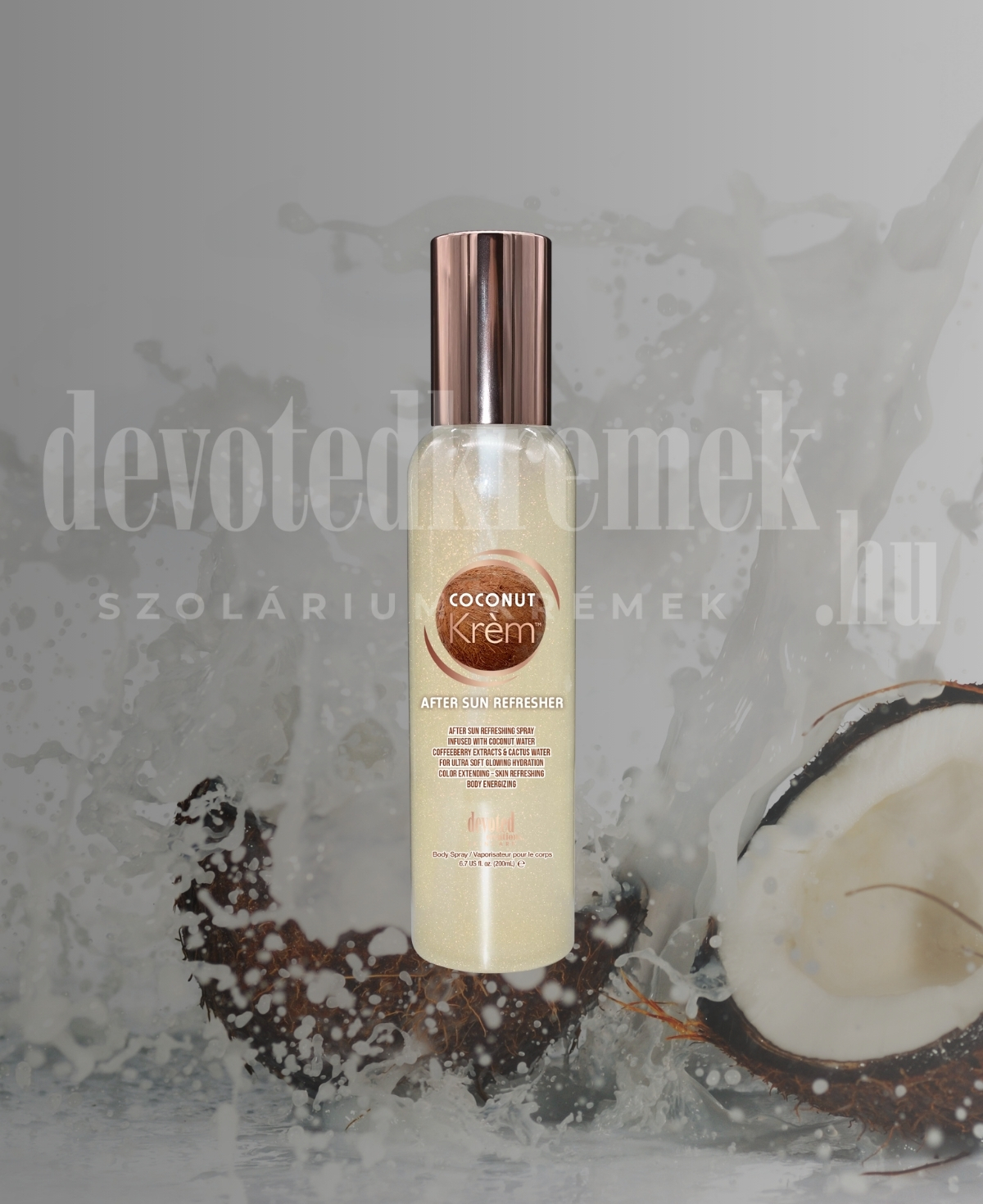 A Coconut Krèm™ After Sun Refresher a napozás utáni bőrápolás igazi luxusélménye! Ez az ultrahidratáló testpermet nemcsak lehűti és felfrissíti a bőrt, hanem segít helyreállítani a hidratáltságot, nyugtatni az irritációt, és megőrizni barnaságod ragyogását.
