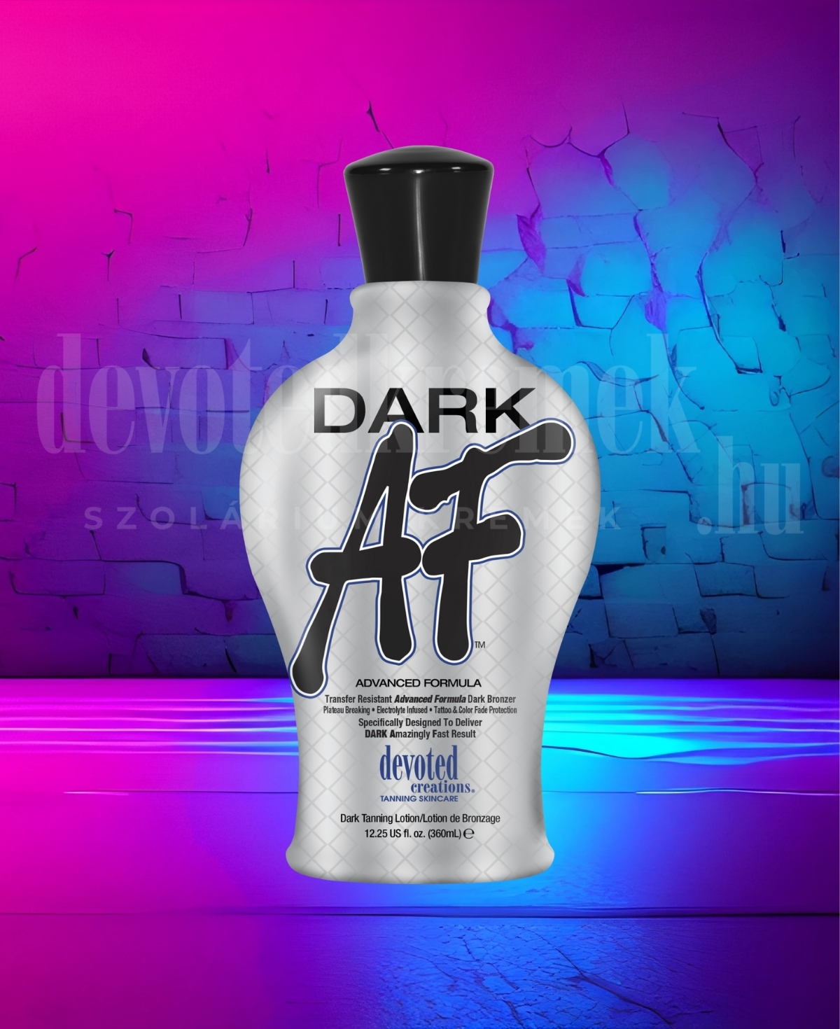 A Dark AF™ egy fejlett DHA-alapú bronzosító, amely nem ismer kompromisszumot, ha látványos színről van szó. A fehér színű, ruhabarát formula kifejezetten úgy lett kialakítva, hogy csak a bőrödön hagyjon nyomot – ott viszont extra hosszan tartót!