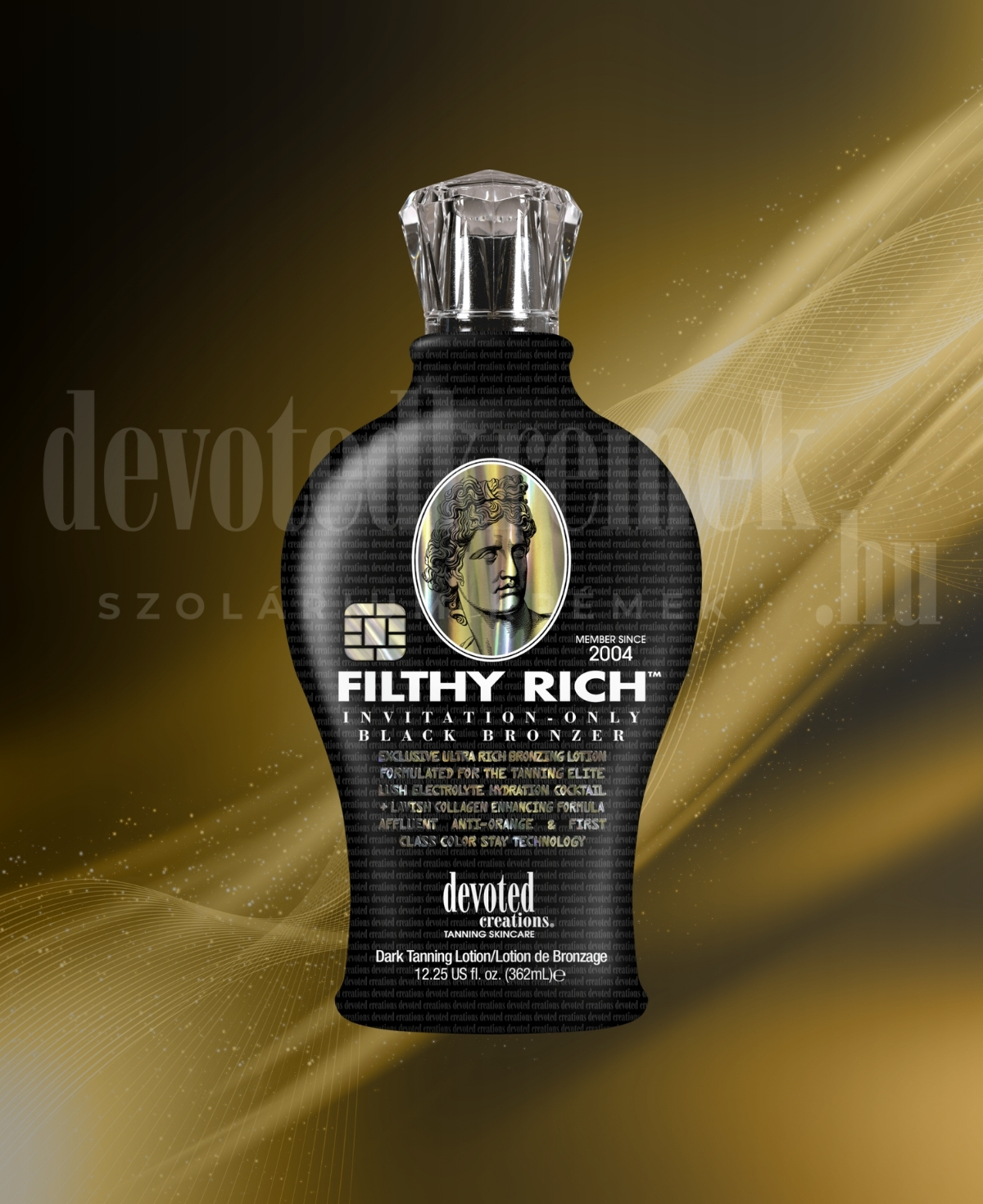Belépőt kaptál a barnaság elit klubjába – üdvözlünk a Filthy Rich™ világában! Ez a rendkívül exkluzív fekete bronzosító nem ismer kompromisszumot, ha luxusról, színről és bőrápolásról van szó. A formula az ultramagas DHA-, természetes és kozmetikai bronzosító tartalom mellett egy Luxurious 4K Blend-del dolgozik, amely optikailag tökéletesíti a bőrt, és hibátlan, sima tónust eredményez.